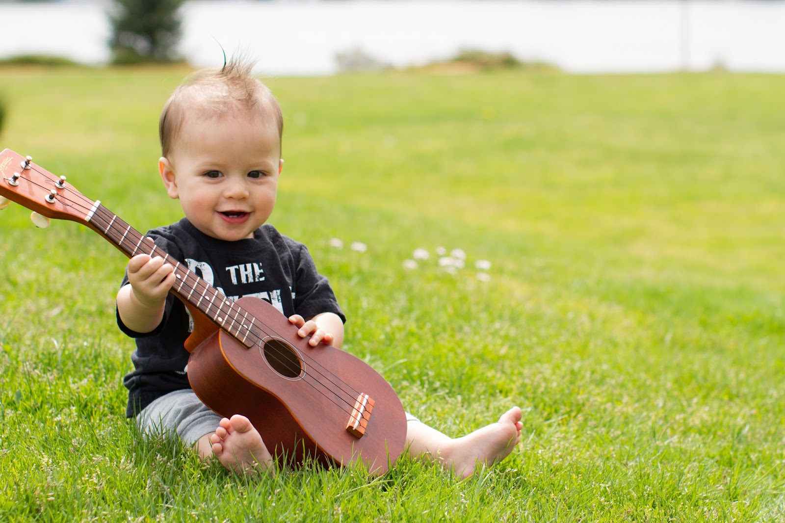 Happiest of birthdays to my father-in-love! To celebrate YOUR birthday, we bought your grandson a t-shirt that made us think of you. :) And then we took photos of him wearing it, while "playing" the ukulele. I think he might need some lessons from his Papa though...